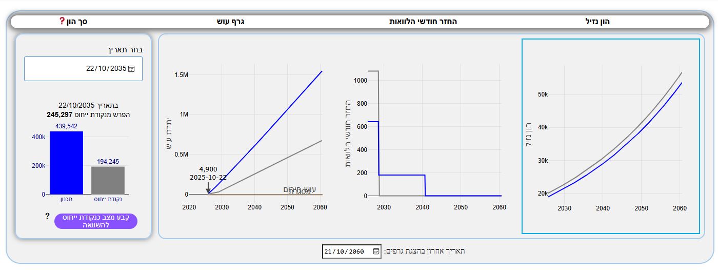הפיקו דוח תכנון מפורט הכולל תצוגה גרפית ומספרית המסכם את פעולות התכנון ומשקף את התפתחות המצב הפיננסי לאורך זמן
