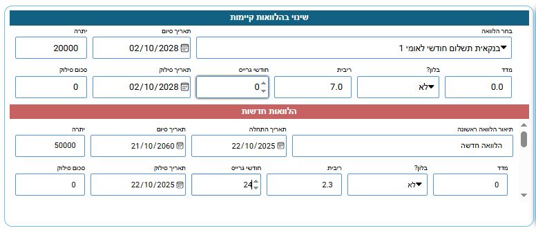ניתן לסמלץ שינויים בהתחייבויות קיימות והן לתכנן התחייבויות חדשות בעתיד